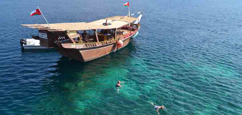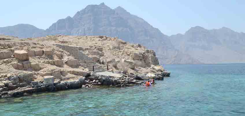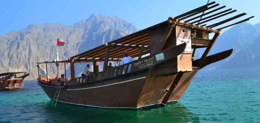Khasab is the capital of Musandam and it’s popular for Fjords, Coral Reef, colored fishes and Dolphin. The sea here is famous for its rich treasure of seafood and also for its beautiful crystal clear water that provides an ideal place for snorkeling and diving. Going on a Dhow Cruise is a fantastic way to see the spectacular Fjords and the surrounding scenery. Our Dhow Cruise takes you to the Khor Sham fjord where the natural community of dolphins are welcoming you to the silence of sea and we do have two anchoring for snorkel and swimming near to the historical Telegraph Island and the Seebi Island. Swim and snorkel among the colorful sea life and under water life in Telegraph and Seebi is one of the best ways to make yourself happy in the present is to recall happy times from the past. The experience of witnessing the parade of big marine life finning along the edge of a reef wall tends not limited during your Full Day Khasab Cruise with us. The guests will be offered safety jackets and snorkeling kit as a part of the tour and indeed you will have mouthwatering sea food lunch and refreshments on dhow.